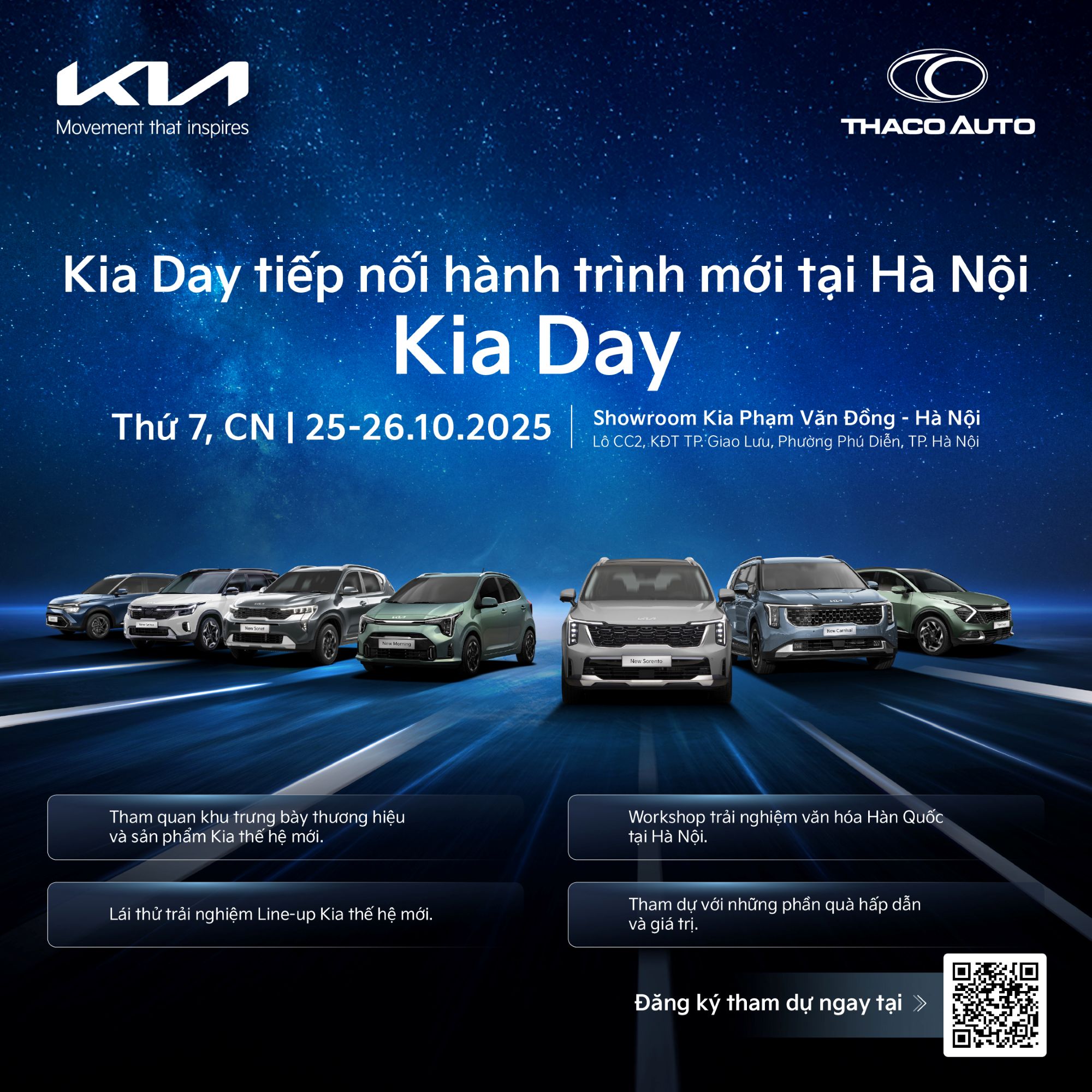Sau thành công rực rỡ của Kia Day TP.HCM, hành trình “Thiết kế mới – Công nghệ mới – Dẫn đầu xu hướng” tiếp tục được Kia Việt Nam mang đến thủ đô Hà Nội vào ngày 25–26/10/2025 như một lời tri ân nhân dịp Kia Việt Nam chinh phục cột mốc 400.000 xe được khách hàng tin chọn và đồng hành.